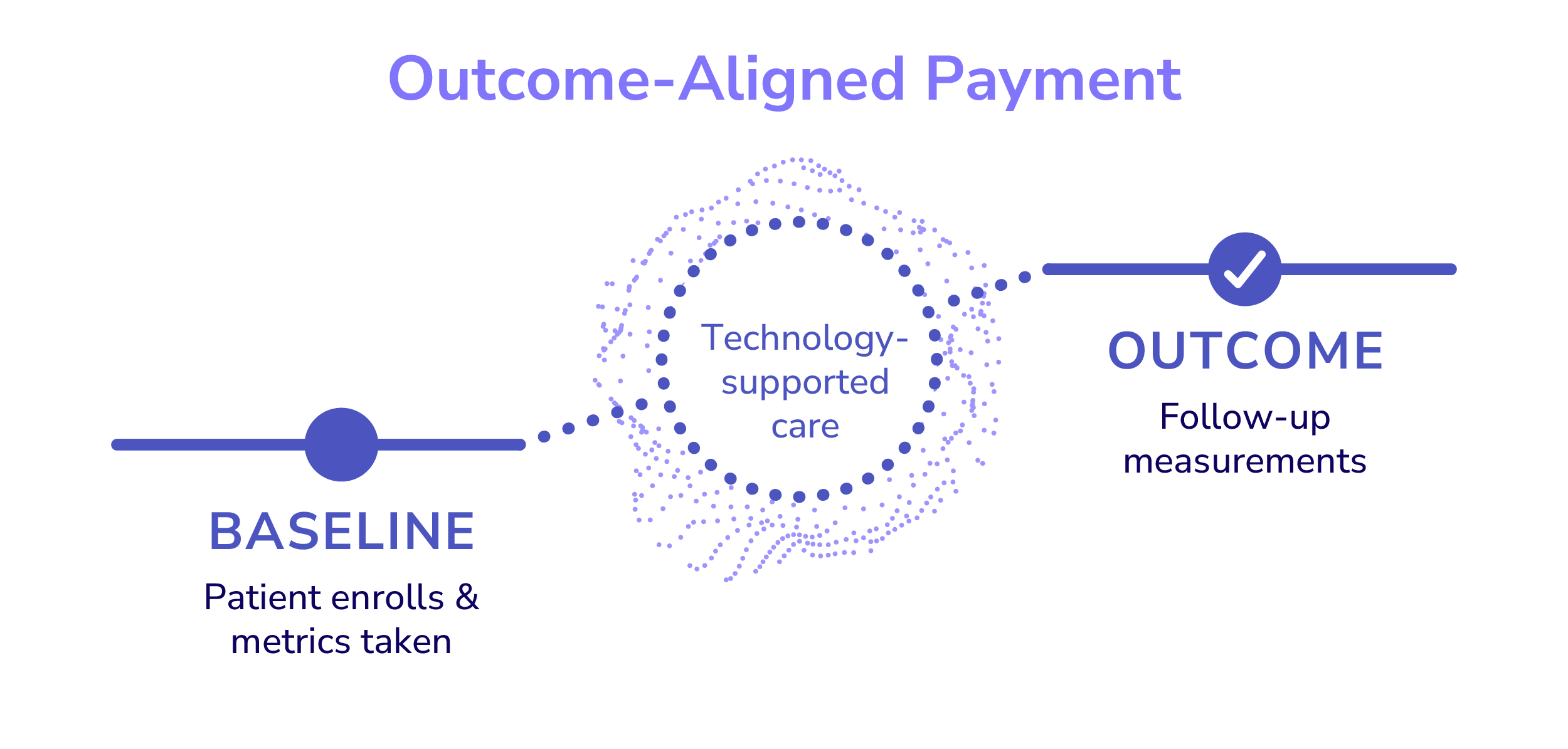 The model’s central innovation is the use of Outcome-Aligned Payments (OAPs): recurring payments tied to clinical and patient-reported outcomes measured against each patient’s own baseline. Measures vary by condition and reflect meaningful indicators of improvement, stability, or deterioration.